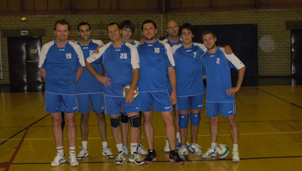 Photo: de gauche à droite: Laurent Henni (coach), Soufyan Aoumeur, Axel Cornut, Victor Baysang, Christophe Bauer, Michel Urbany, Matthieu Texier, Léonard Daver